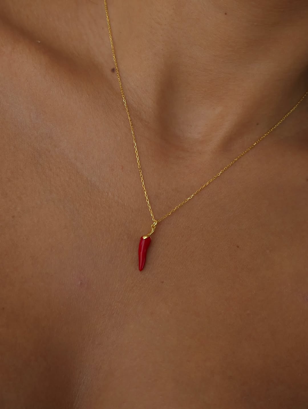 İtalyan kültürünün simgesi Cornicello kolyesi; şans, aşk, bolluk ve negatif enerjiden korunma anlamı taşır. Modern ve şık tasarımıyla hem günlük kullanımda hem de özel günlerde stilini tamamlar. Altın kaplama zinciriyle uzun ömürlü, parlak ve premium bir görünüm sunar.
