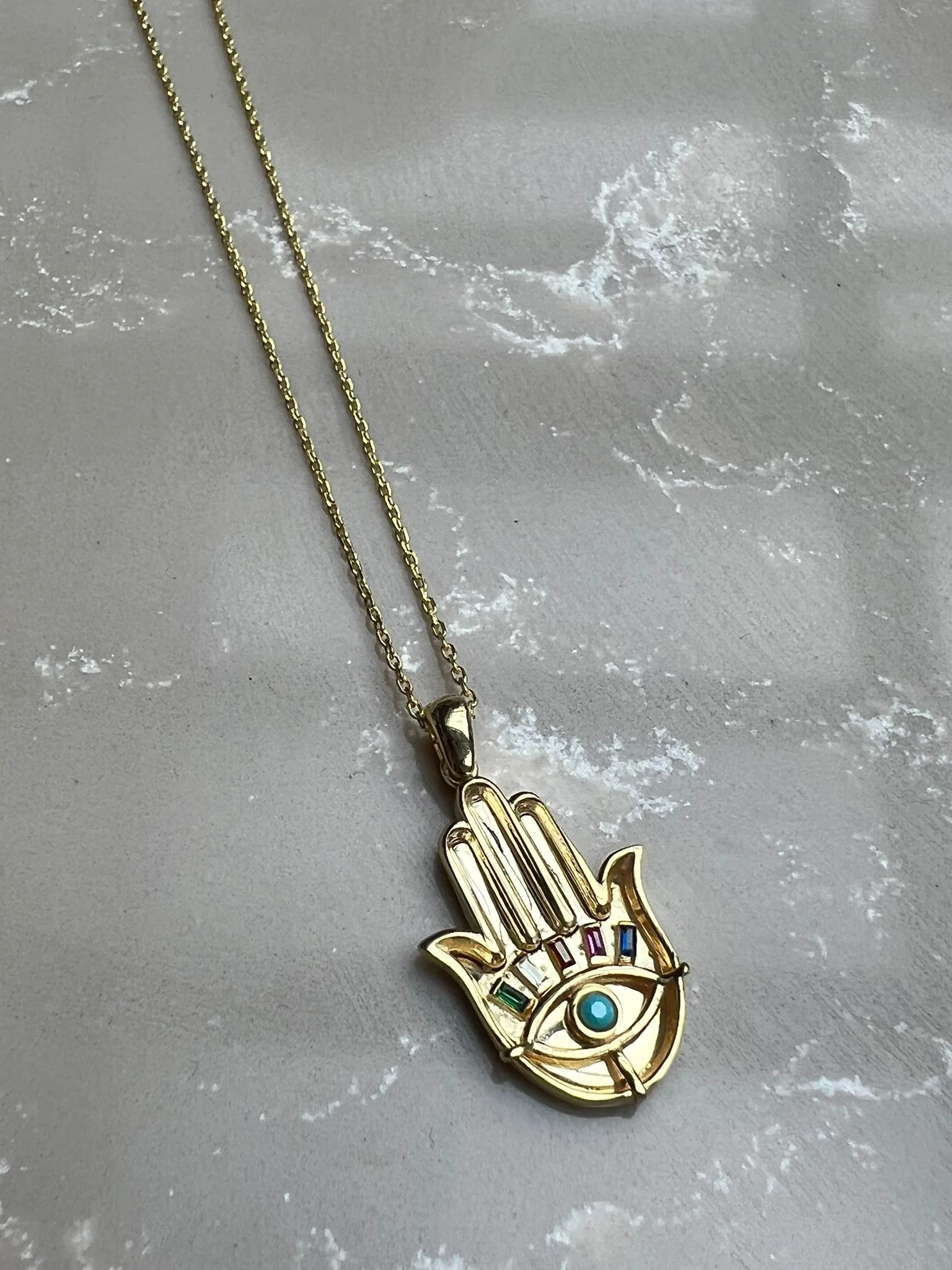 Hamsa eli, yüzyıllardır kötü enerjiden korunma, şans çekme, aşkı güçlendirme ve huzur getirme sembolü olarak bilinir. Bu özel altın kaplama Hamsa tılsımı, hem güçlü anlamı hem de zarif duruşuyla tarzını mükemmel şekilde tamamlar.
